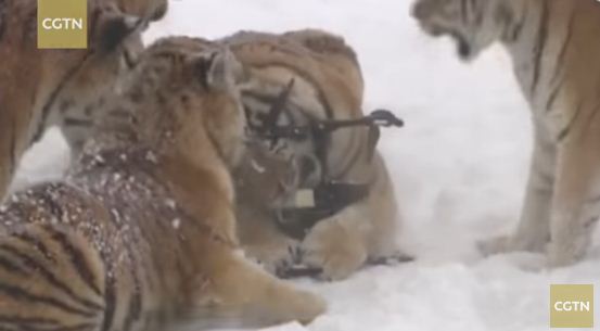 Televizioni shtetëror kinez ka publikuar pamjet e një ‘gjahu’ krejtësisht të pazakontë; një tufë tigrash siberianë, të cilët po filmoheshin nga një dron në një rezervat natyror në provincën Heilongjiang, duket se nuk u ka pëlqyer mysafiri i paftuar.