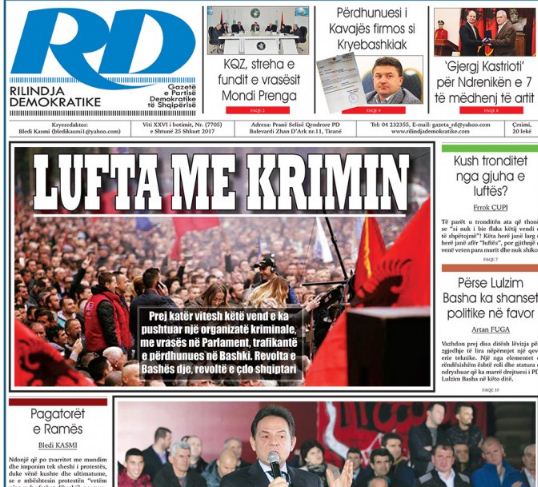 Në një editorial të publikuar në gazetën zyrtare të PD, Rilindjen Demokratike nën titullin “Pagatorët e Ramës”, shkruhet ndër të tjera se ka disa persona që po përpiqen të personalizojnë protestën. “Ndonjë që po zvarritet me mundim dhe imponim tek sheshi i protestës, duke vënë kushte dhe ultimatume, se e mbështesin protestën vetëm nëse nuk afrohet ‘ky apo dikush tjetër”, po mundohen ta personalizojnë atë. Këtyre individëve që numërohen me kokrrat e njërës dorë nuk i intereson protesta. Ata e shohin protestën si parcelë të ndarjes së pushtetit nesër dhe po bëjnë llogari.