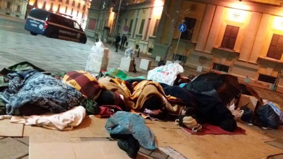Image GalleryGrevistët e Zharrëzës së Fierit e kanë kaluar jashtë natën e parë të protestës së tyre në Tiranë. Ata e kanë pritur mëngjesin e sotëm, shtrirë në trotuarin përpara ministrisë së Energjetikës, në pritje të mbajtjes së premtimit nga qeveria për ndalimin e shpërthimeve nëntokësore në fshatin e tyre dhe marrjen personalisht në dorë të akteve të ekspertimit që vlerësojnë dëmet në banesat e tyre.