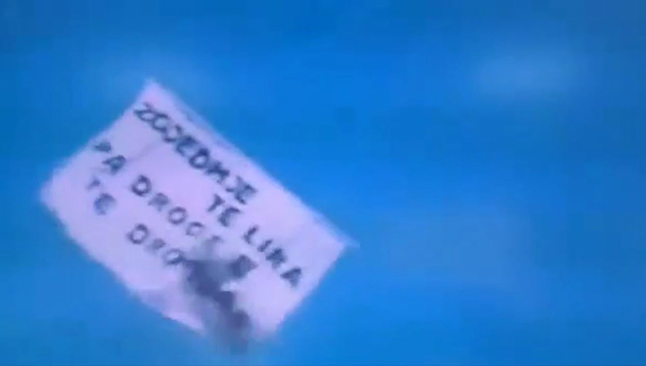 “Zgjedhje të lira, pa drogë dhe të droguar”, shkruhej në parullën e vendosur në dron.
