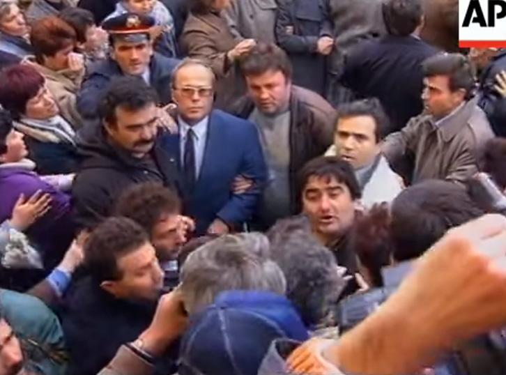 Në videon pa koment të AP, duket Nano me kostum e kollare, i rrethuar nga shumë njerëz. Një nga ata që e mbajnë për krahu, është deputeti i sotëm i PS-së, Paulin Sterkaj. Në atë kohë, Sterkaj ishte shefi i repartit special të policisë “Brisku”.