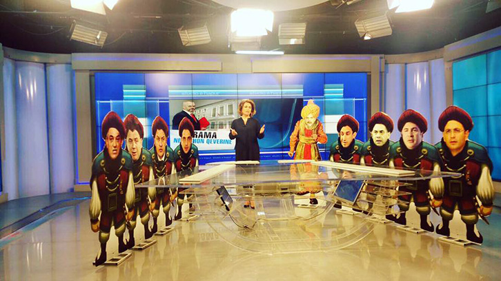 Në “shenjë hakmarrje”, ajo “e mbushi” studion me instilacionin e përdorur nga opozita në ditët e saj të protestës në çadër, të cilët, nuk ishin asgjë më shumë se “Ali Babën dhe 40 hajdutët”…