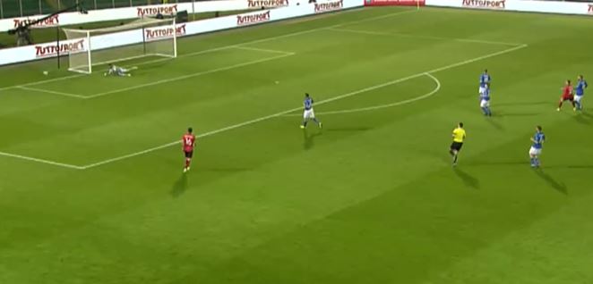 Në minutën e 12 Italia ka kaluar në avantazh pasi albitri dha një penallti në favor të skuadrës italiane. Ndërkohë tifozë shqiptarë kanë hedhur fishekzjarre në fushë.