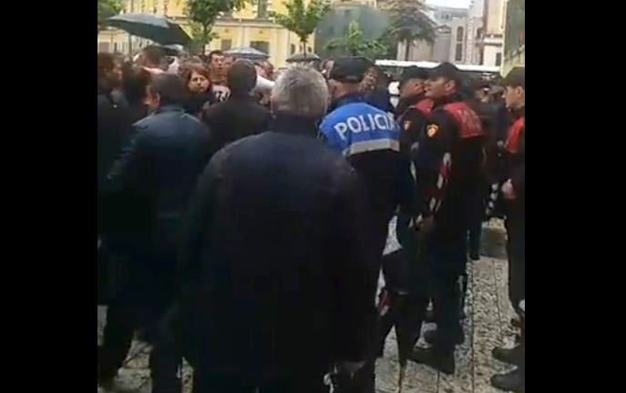 Më herët punonjësit protestuan edhe para portit të Durrësit duke bllokuar hyrjen e kamionëve në port për disa minuta.