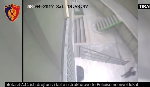 Në videon e publikuar sot, autori i dyshuar shihet duke lëvizur nëpër shkallët e pallatit ku edhe ndodhi krimi, ndërsa lëvizjet janë filmuar rreth orës 18:53 minuta të datës 8 prill 2017.