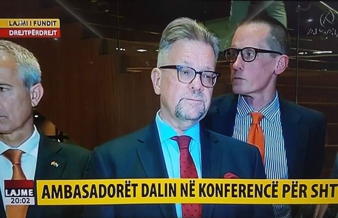 Një numër i madh ambasadorësh u mblodhën për të dhënë deklaratë lidhur me situatën e krijuar në vend. Në mesin e ambasadoreve shihen ambasadori i Britanisë, Holandës, SHBA-së, Gjermanisë, e të tjerë.