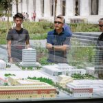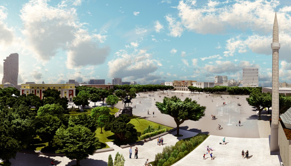 Diplomati amerikan u ndal tek maketi ku është prezantuar projekti i sheshit , e më pas vizitoi pjesët e ndryshme, si lulishtet, shatërvanët, parkimi nëntokësor.