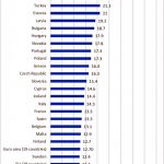 Kjo është përqindja më e lartë jo vetëm nga shtetet e Bashkimit Europian, por edhe në raport me fqinjët në rajon. Shteti i dytë pas nesh është Bosnja, me 34% të totalit, i ndjekur nga Maqedonia me rreth 32%, Rumania 29%, Mali i Zi 28% dhe Serbia 25.7%.