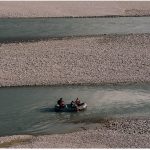 Autori jep foto të disa shkencëtarëve nga Gjermania dhe Austria, që po udhëtojnë me trap poshtë Vjosës pranë Kuta, duke mbledhur bimë të ujit dhe mostra të kafshëve për të ndërtuar një rast për bllokimin e ndërtimit të digës pranë burimeve të Poçemit.