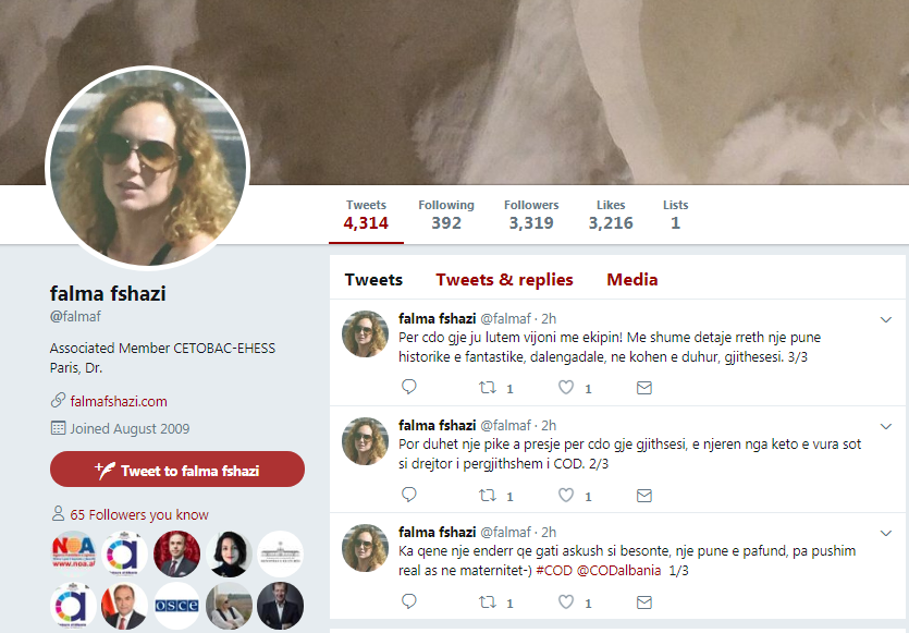 Drejtoresha e COD në Kryeministri Falma Fshazi ka dhënë dorëheqjen nga detyra. Lajmin e ka bërë publik vetë Fshazi përmes disa postimeve në Twitter.