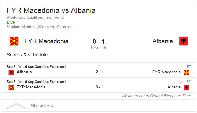 53’ Odise Roshiiiiii. 0-1. Shqipëria në avantazh. Kundërsulm i shpejtë i Sadikut në krahun e majtë. Sulmuesi sheh Roshin dhe lëshon një harkim perfekt për mesfushorin i cili gjen rrjetën me gjuajtjen e parë në portë të Shqipërisë në këtë ndeshje.