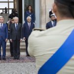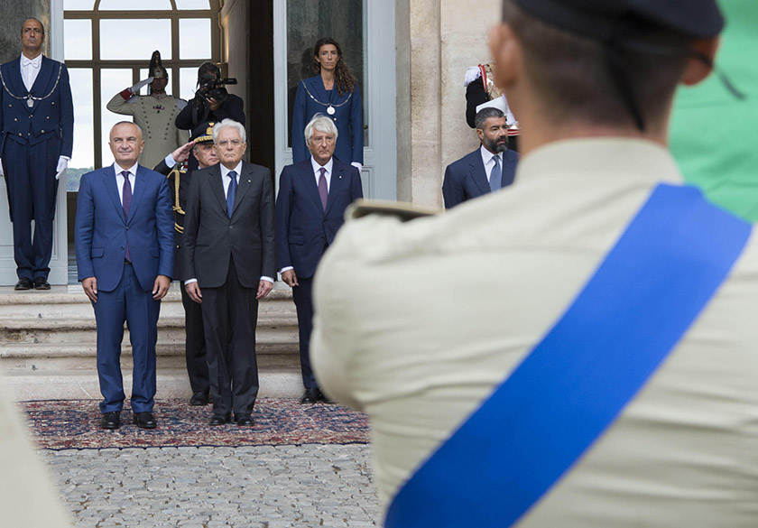 Në kuadrin e vizitës zyrtare në Itali, Presidenti i Republikës, Ilir Meta u prit sot nga Presidenti i Republikës ItalianeSergio Mattarella, në Sheshin e Nderit të Pallatit Quirinale. Pas interpretimit të himneve kombëtare, të dy Presidentët zhvilluan bisedimet zyrtare ku i pranishëm ishte edhe Ministri i Jashtëm i Italisë, Angelino Alfano.