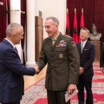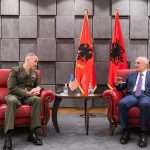 Gjeneral Dunford falënderoi Presidentin Meta për angazhimin dhe kontributin e Shqipërisë dhe Forcave të saj të Armatosura përkrah ushtrisë së SHBA-së në Afganistan, Irak, dhe vende të tjera dhe vlerësoi përpjekjet e Shqipërisë për ngritjen e nivelit të partneritetit dhe të koordinimit strategjik Shqipëri – SHBA.