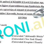 Sekretari i Përgjithshëm i Kuvendit ka përfunduar raportet për procesin e verifikimit të plotësimit të kushteve ligjore dhe kritereve profesionale e morale për kandidatët e Këshillit të Lartë Gjyqësor dhe Këshillit të Lartë të Prokurorisë.