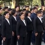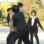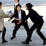 Të veshura me kostum të zi, oficeret japoneze kanë kryer një sërë simulimesh, duke zhvilluar manovra mbrojtëse në prag të mbërritjes së Melania Trump.