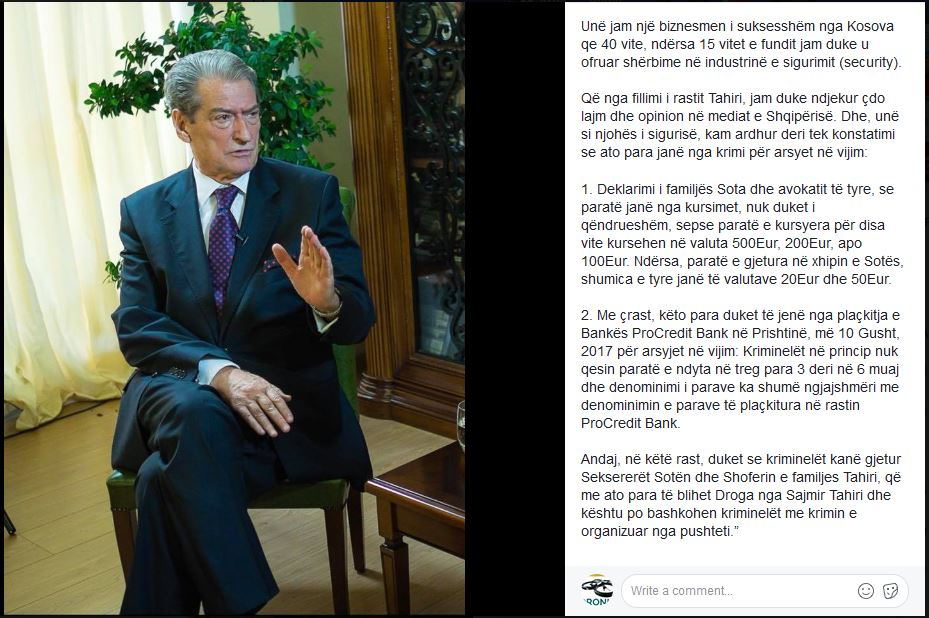 Andaj, në këtë rast, duket se kriminelët kanë gjetur Seksererët Sotën dhe Shoferin e familjes Tahiri, që me ato para të blihet Droga nga Sajmir Tahiri dhe kështu po bashkohen kriminelët me krimin e organizuar nga pushteti”.