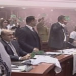 Seanca e sotme plenare është kthyer në një arenë përplasjesh midis palëve, ndërkohë që jashtë Parlamentit mijëra protestues po përballen me policinë. Gjatë kohës kur deputetët e PS votonin Prokurorin e Përgjithshëm të përkohshëm, deputetët e opozitës kanë hedhur tymuese me ngjyrë në drejtim të kryeministrit Rama dhe kreut të Kuvendit, Gramoz Ruçi.