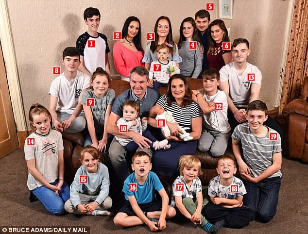 Çifti ka thënë se janë të lumtur të ndalojnë numrin e fëmijëve pasi mirëpritën djalin e tyre më të vogël. Archie u bashkua me vëllezërit e motrat Chris 28 vjeç, Sophie 23 vjeç, Chloe, 22 vjeç, Jack 20 vjeç, Daniel 18 vjeç, Luke dhe Millie 16 vjeç, Katie 14 vjeç, James 13 vjeç, Ellie 12 vjeç, Aimee 10 vjeç, Max 8 vjeç, Tillie 7 vjeç, Oscar 5 vjeç , Casper 4 vjeç, Hallie 2 vjeç dhe Phoebe 16 muajsh.