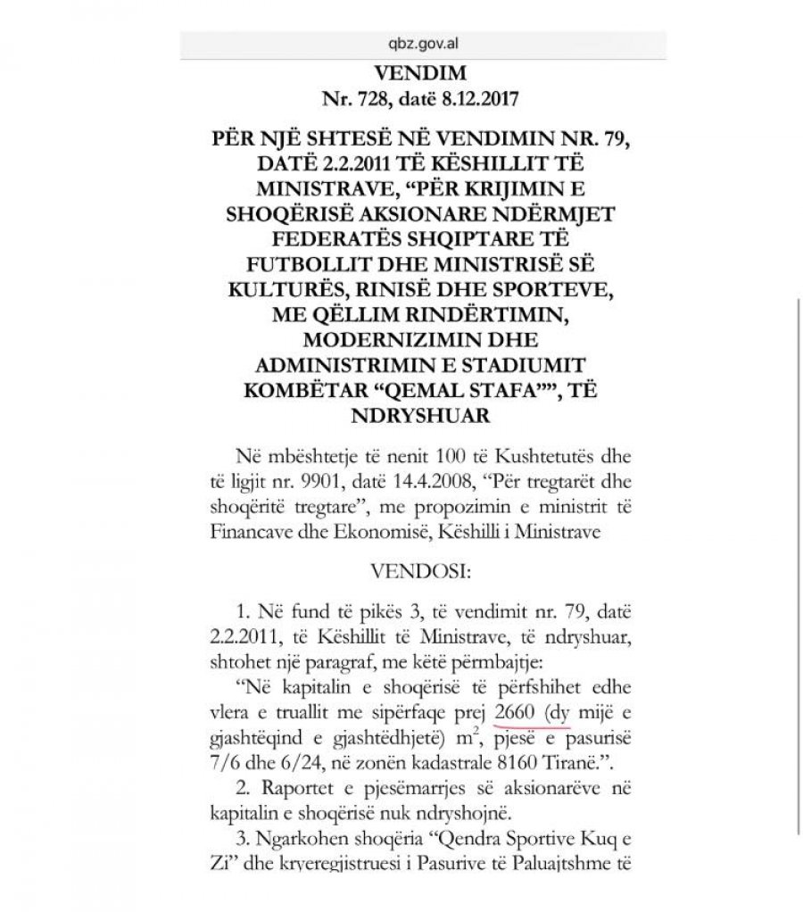Ish-kryeministri Sali Berisha, ka denoncuar një tjetër skandal, të qeverisë Rama. Përmes një dokumenti të publikuar në Facebook, Berisha denoncon vendimin e qeverisë, se si Rama po shpërblen me 2660 m2 tokë publike kullën 24-katëshe ‘Kristaq Rama’.