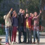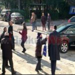 Ai është pritur nga qytetarë që ndodheshin në oborrin para selisë, ndërsa i ka përshëndetur me dy gishta lart dhe më pas personalisht nga afër.