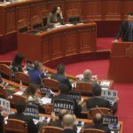Me në krye Lulzim Bashën, opozita ka vendosur që të bllokojë punimet e Kuvendi, deri në përjashtimin e Edi Ramës nga seanca parlamentare. Pas një fjalimi ku kërkoi lirimin e 11 kuksianëve që ndodhen në burg, kreu i PD-së Lulzim Basha kërkoi edhe përjashtimin e Edi Ramës.