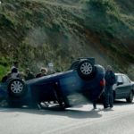 Një automjet ka humbur drejtimin dhe ka përfunduar i kthyer përmbys ne ane te rrugës, ndërkohë qe jashtë kane dale te tmerruar pasagjeret.