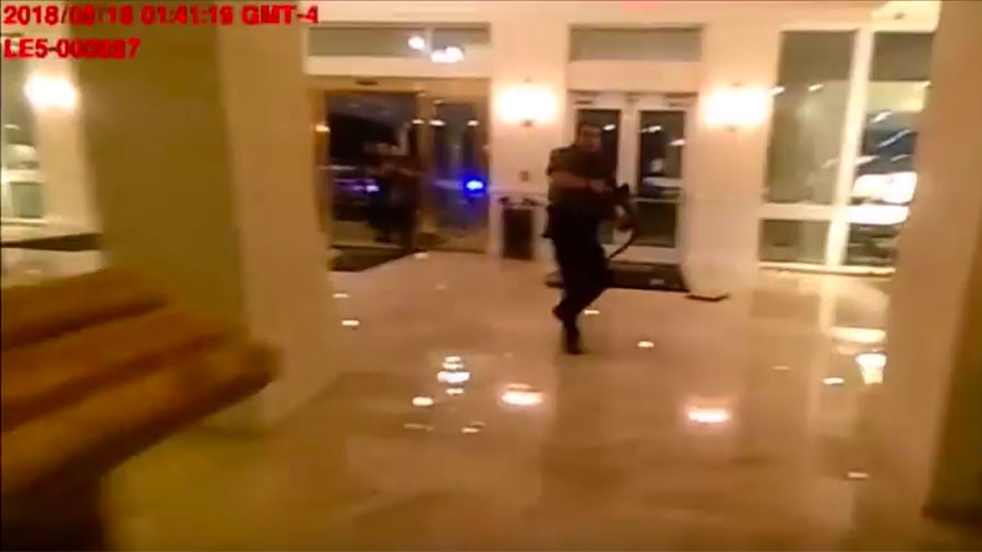 Zyrtarët nga qyteti i Doral dhe Departamentet e Policisë Miami-Dade iu përgjigjën thirrjeve të shumta për të shtëna në zonë. Si tregojnë pamjet nga vendi i ngjarjes, oficerët hynë në hotel dhe shpejt zunë të dyshuarin.