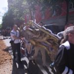 Statujën e Drejtësisë 3 metra të lartë e mbajnë 10 të rinj të maskuar si Edi Rama, Fatmir Xhafaj, Saimir Tahiri, Agron Xhafaj, Moisiu Habilaj për të treguar se Drejtësia është vënë në shërbim të trafikut të drogës, krimit të organizuar dhe qeverisë së lidhur me të.