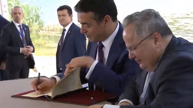 Marrëveshja mes Greqisë e Maqedonisë për emrin është firmosur sot në Prespë mes kryeministrave të dy vendeve Tsipras dhe Zaev. Maqedonia prej sot do të thirret me emrin e ri ‘Maqedonia e Veriut’.