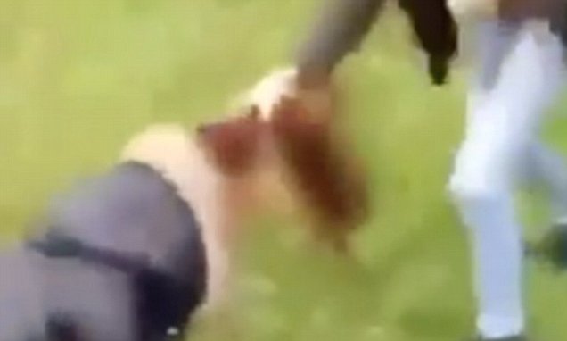 Pic by HotSpot - SHOCKING VIDEO OF TEEN BEING BEATEN UP BY BULLIES - IN PIC - Abbie McCarthy, 15, is seen being dragged along the floor by one of the bullies - A video has emerged online of a teen being dragged around a field by her hair by a bully before being brutally punched in the head. A watching crowd film the vicious attack on their mobiles and cheer as the victim, Abbie McCarthy, 15, is repeatedly attacked. Abbie's mum Carly, 36, from Middleton, Manchester, claims her daughter was forced to move schools in April due to classmates bullying her… SEE HOTSPOT MEDIA COPY 0121 551 1004