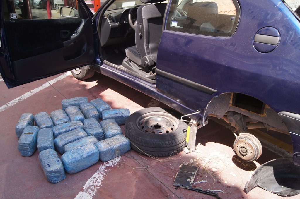 Gjatë kontrollit të mjetit me të cilin ai udhëtonte, policia ka gjetur të fshehur në pjesën e shasisë dhe kabinës, 36 pako me kanabis që në total peshojnë 40.7 kg.
