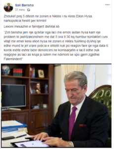 Ishte ish-kryeministri  Berisha ai që bëri publike rastin e zhdukjes së një 34 vjeçari në Laç. Dje Sali Berisha publikoi mesazhin e xhaxhait të djalit që thoshte se kishin denoncuar zhdukjen e nipit por se ende nuk kishte nisur hetimi.