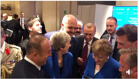 Kryeministrat dhe Presidentët e vendeve të NATO-s i kanë parë minutat e fundit të ndeshjes Kroaci-Angli në hollin e selisë së NATO-s nga celulari i Merkel.