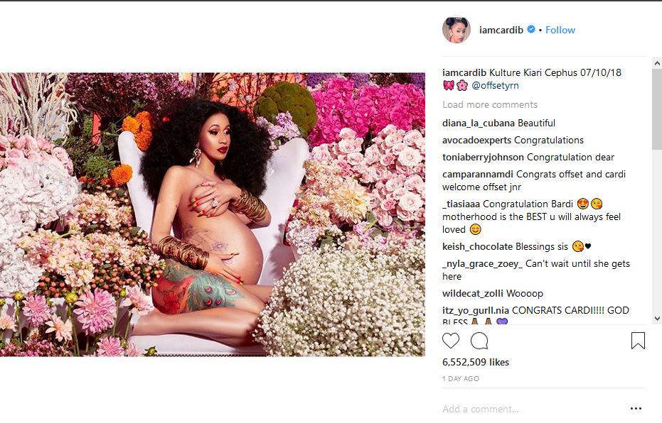 Cardi B në rrjetin e saj social instagram ka postuar disa foto në të cilat shkruan se emri i vajzës është Kulture dhe shkruan se kjo është ndjesia më e mirë që mund ti ketë ndodhur.