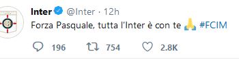 Pas aksidentit, ekipi i tij ka shkruar në Tëitter një mesazh për ta motivuar talentin e ri. ”Forca Pasqule, i gjithë Interi është me ty”.