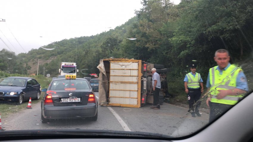 Një i tillë ka ndodhur edhe në fshatin Dobërçan të komunës së Gjilanit, ku shihet një kamionetë që ka humbur kontrollin dhe është kthyer me goma sipër në rrugë.