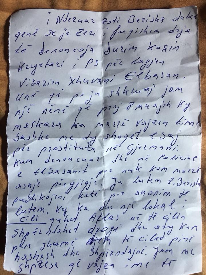 Letrën po jua dërgoj me foto, ndërsa teksti i saj është si më poshtë: