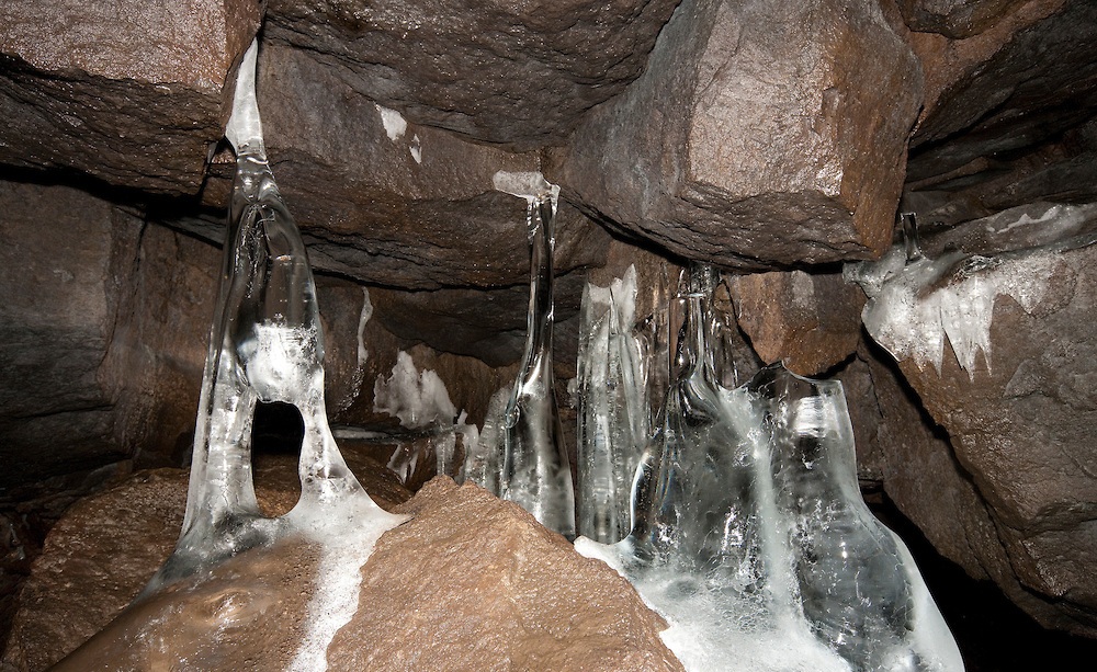Ajo se çfarë mund të gjendet në shpellën e Akullit janë stalaktitet e stalakmitet e lloj-lloj formave.