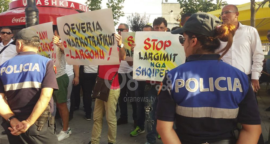 Gazetarja e Ora News, Belinda Ruçaj na informon se herë pas here ka pasur edhe përplasje mes policisë dhe grupit të protestuesve, të cilët mbajnë në duar sloganet “Elbasni i narkotrafikut, shteti i narkotrafiku”.