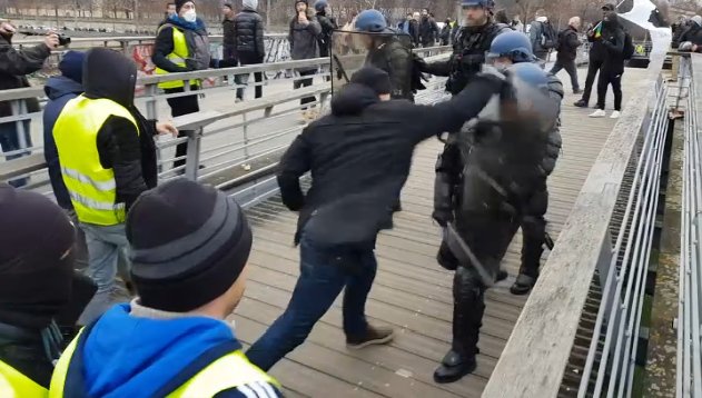 Protestues nga e gjitha Franca janë rikthyer sërish në protesta kundër qeverisë së presidentit Emmanuel Macron, ku mes tyre ishte dhe një ish-boksier profesionist. Bëhet fjalë për Christophe Dettinger, i cili në urën Leopold-Sédar-Senghor dha leksione boksi për të pranishmit, ku grushtoi mbi policinë.