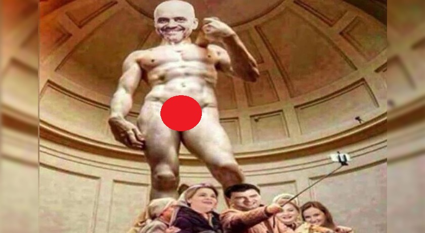 Pas larjes në dush paska montuar kokën e tij të epërme në “kokën e poshtme të skulpturës”.