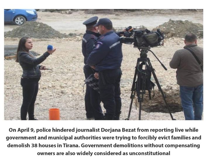 - Forcat policore kërcënuan me arrestim gazetaren e Neës24 Dorjana Bezat dhe e penguan atë të raportonte live shkatërrimin antiligjor dhe sulmin me gaz brenda shtëpive të 38 familjeve te Bregu i Lumit.