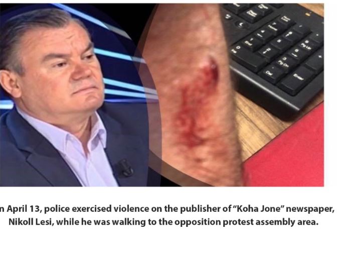 - Nikollë Lesi, i gazetës “Koha Jonë” u pengua dhe u dhunua nga policët, ndërsa po shkonte në protestën e opozitës së datës 13 prill.