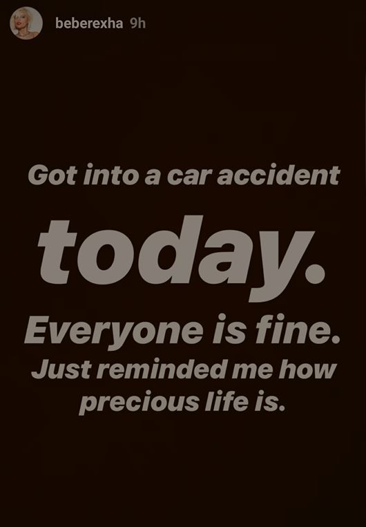 Bebe Rexha është përfshirë në një aksident mbrëmjen e djeshme. Lajmin e ka bërë të ditur vetë ajo në rrjetet sociale.