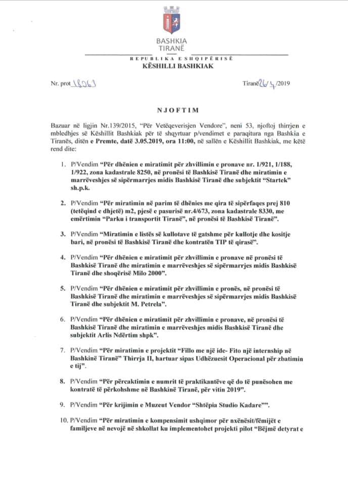 Gjatë mbledhjes, Këshilli Bashkiak ka votuar kalimin e pronave të Bashkisë tek privati me shumicë të thjeshtë votash kur në të vërtetë nevojiten 37 vota.