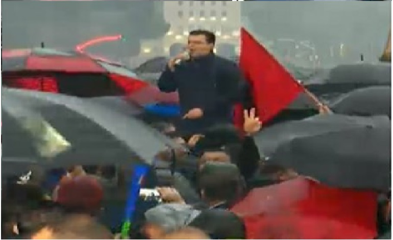 Edi Rama dhe klika e tij duhet ta dijë fare mirë se ne në këtë shesh dhe qindra mijë shqiptarë jemi garancia e vetme që luftojmë për vlerat e Evropës, luftojmë për Perëndimin. E sotmja është një marshim protsete kundër qeverisë së bërë njësh me krimin. Rama ik.