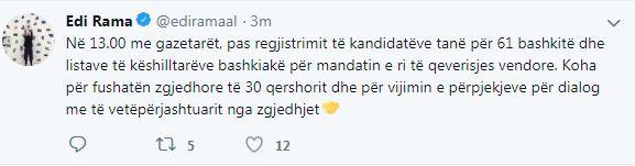 Bashkëbisedimi do të nisë në orën 13:00 dhe vjen një ditë pas marshimit protestë që opozita ndërmori pasditen e 13 majit nëpër Tiranë, duke u ndalur fillimisht tek kryeministria, më pas tek Drejtoria e Përgjithshme e Policisë, më pas Parlamenti, ministria e Brendshme dhe në fund drejtoria e policisë e Tiranës.
