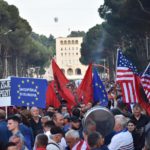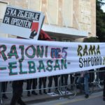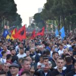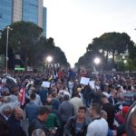 “S’ka zgjedhje pa opozitën” dhe “Rama ik” lexohet në pankartat e protestuesve.