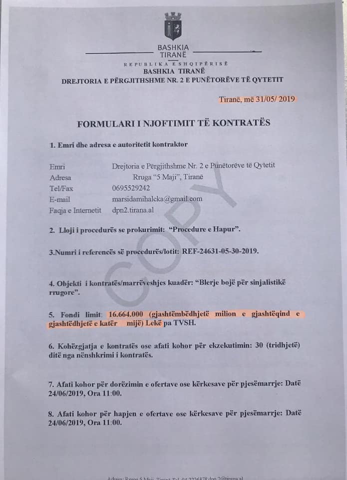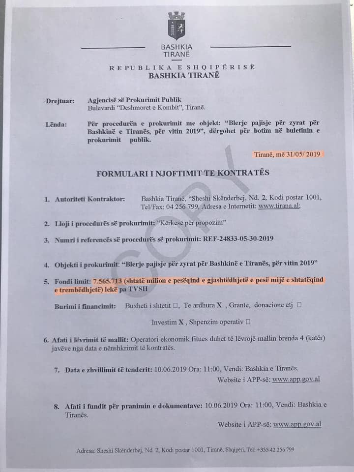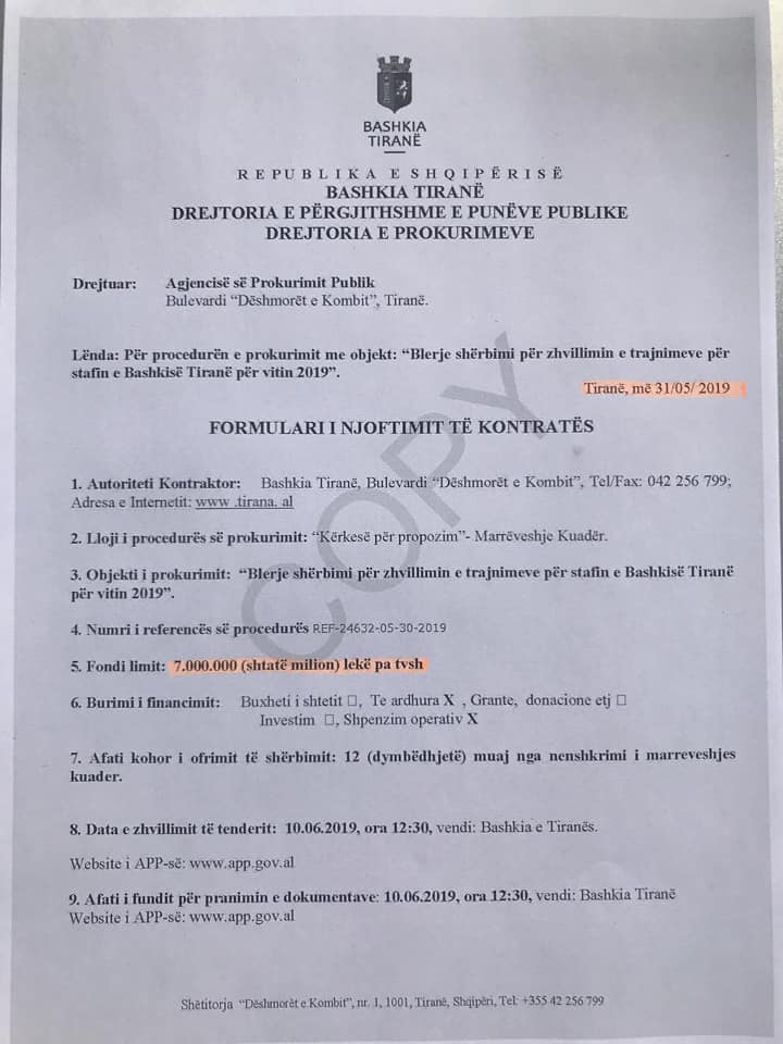 Abuzimi dallon qartë në Bashkinë e kryemashtruesit Erion Veliaj i cili ditën e fundit 31 Maj 2019 që mbyllet dhe sistemi i prokurimit publik sipas VKM për këto njesi vendore , ka arritur të tenderoj kontrata që shkojnë në një vlerë prej 5.2 milion euro . Tenderat e zhvilluar ne ditën e fundit janë abuziv dhe me vlera të 3 fishuara , këtu vërehen në tenderat si: per trajnim stafi të Bashkise , blerje mobiljesh!