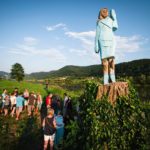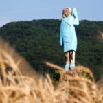 Statuja është vendosur në majë të një dërrasë druri me shkurre në një fushë pranë vendlindjes së saj të Sevnica, sipas fotografive të lëshuara këtë javë.